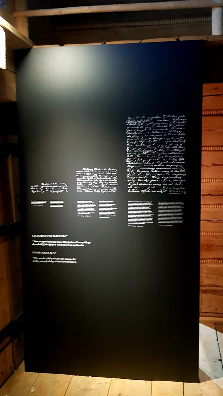 Czarna ścianka z tekstem oraz miejscem prezentacyjnym.